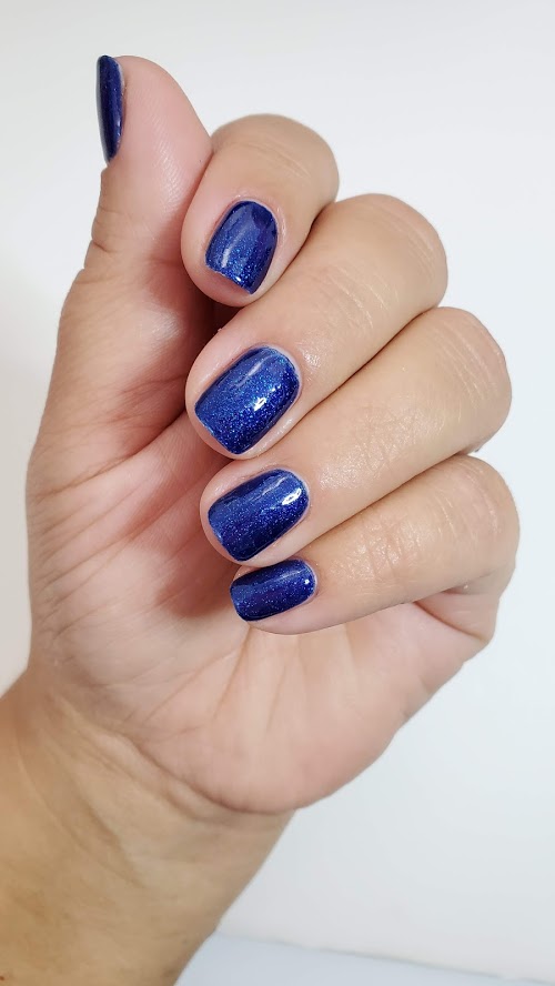 Royal blue. Bright. Shimmer. Opaque. Cool undertone.